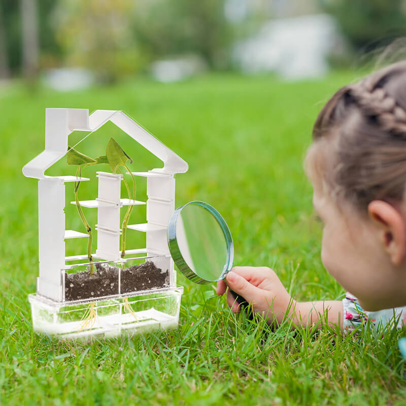This kit includes a greenhouse, shade panels for maze assembly, a soil tank and a water tank. Plant your own seeds and observe its root growth with the magnifying glass. Experiment with 6 different activities to learn about geotropism and phototropism.